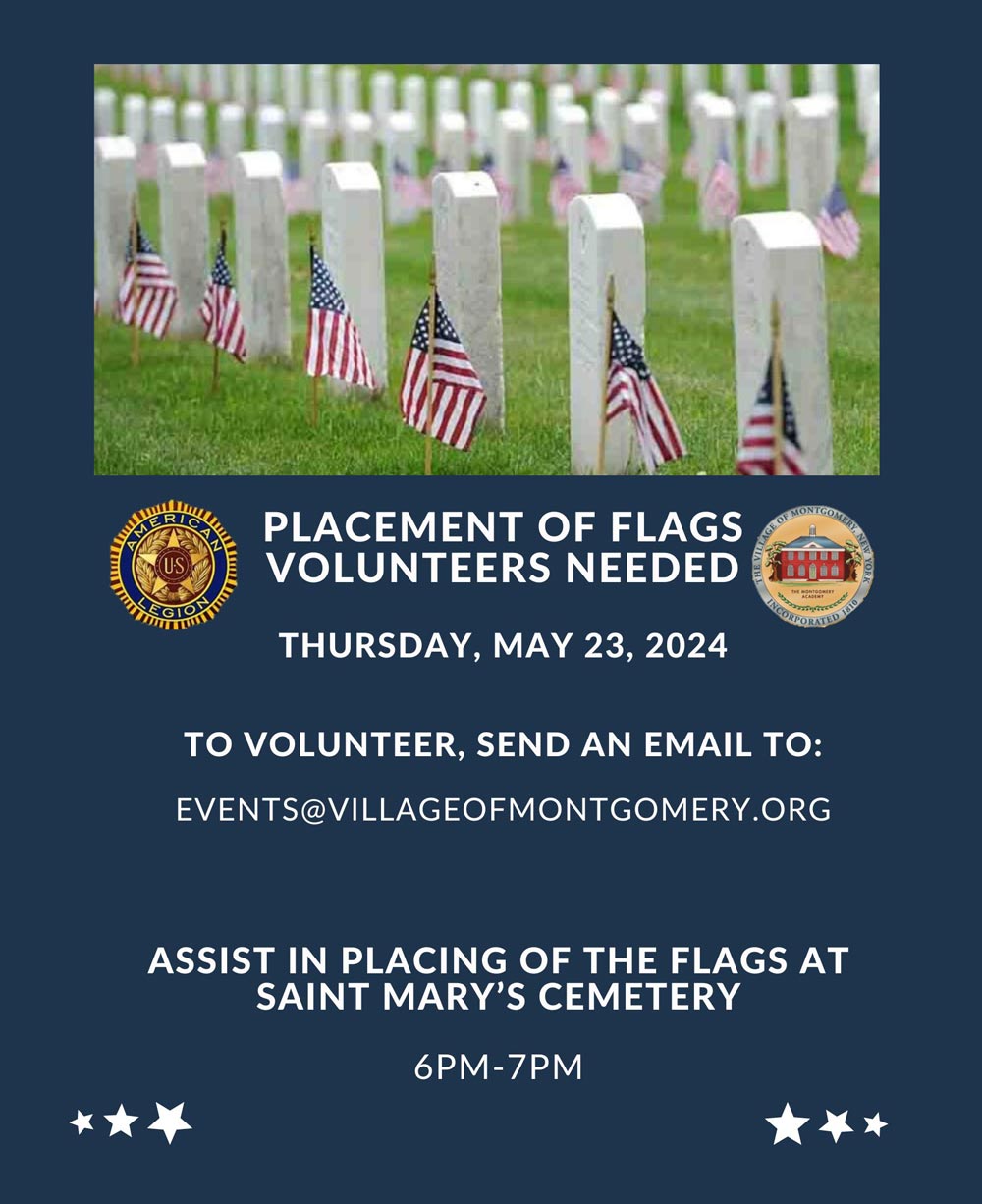 Flag Placement to Honor Veterans at 6pm at Saint Mary's Cemetery